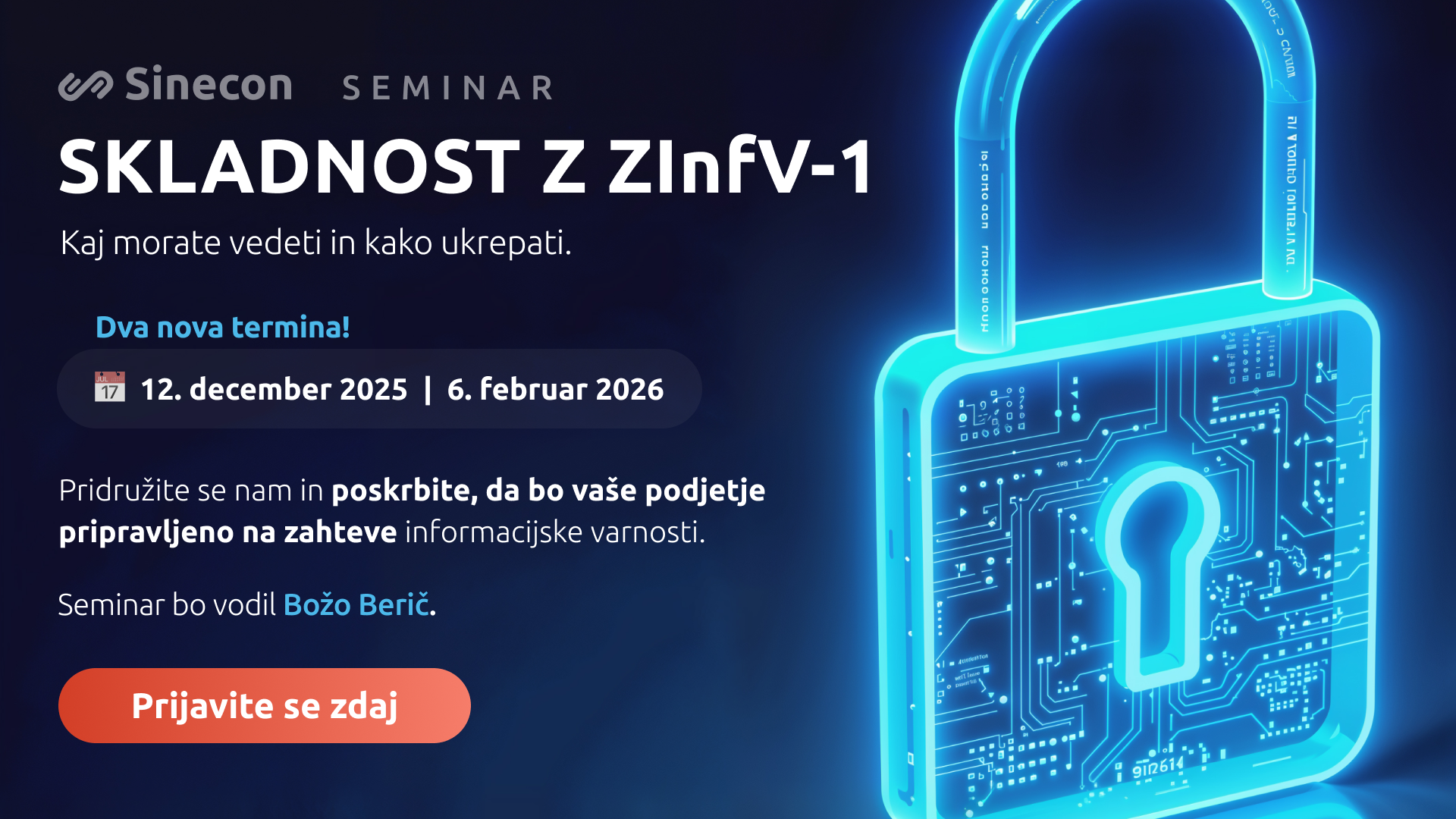Doseganje skladnosti z Zakonom o informacijski varnosti (ZInfV-1) je proces, ki zahteva sistematičen pristop in jasno zastavljene korake. V Sineconu smo pripravili vodnik 9 ključnih korakov, ki organizacijam pomagajo učinkovito oceniti trenutno stanje, prepoznati vrzeli, vzpostaviti ustrezne varnostne ukrepe ter zagotoviti trajno skladnost. S tem ne le izpolnite zakonske zahteve, temveč okrepite zaupanje v svoje digitalno okolje in odpornost organizacije proti varnostnim grožnjami.