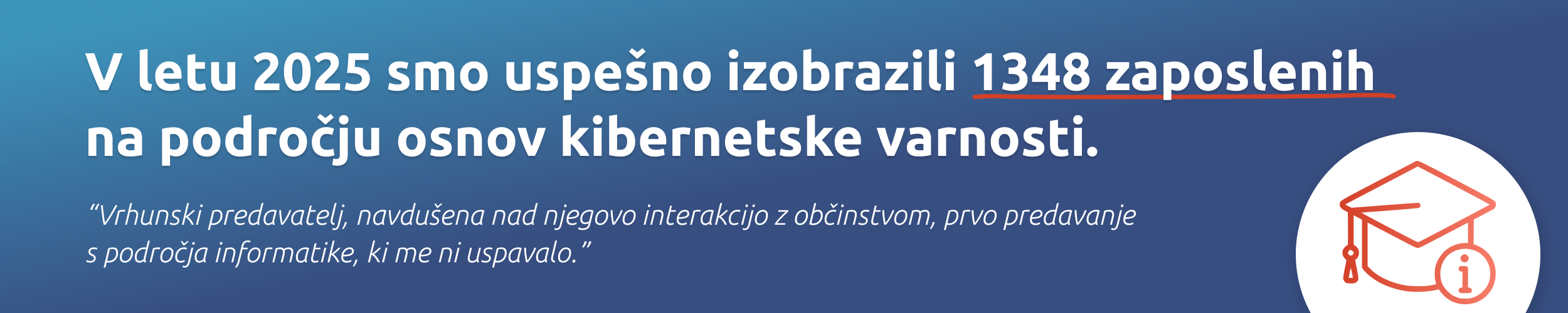 "Predavatelj je na zanimiv in sproščen način predstavil temo kibernetske varnosti, ki nam ni ravno vsakdanja. Z uporabnimi primeri iz prakse je pritegnil pozornost in naredil predavanje res razumljivo in uporabno. Všeč mi je bilo, da ni šlo zgolj za teorijo, ampak smo dobili konkretne nasvete, kako se zaščititi (tako pri delu kot tudi doma pri vsakodnevni uporabi interneta). Predavanje je bilo dinamično, praktično in predvsem zelo koristno."